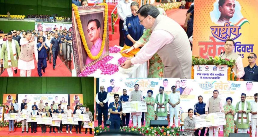 मुख्यमंत्री श्री पुष्कर सिंह धामी ने आज मेजर ध्यानचंद जयंती के अवसर पर परेड ग्राउंड स्थित बहुउद्देश्यीय क्रीड़ा हाल में आयोजित राष्ट्रीय खेल दिवस – 2025 कार्यक्रम में प्रतिभाग किया। समारोह को संबोधित करते हुए उन्होंने कहा कि खेल और खेल भावना समाज को ऊर्जा, अनुशासन और प्रेरणा प्रदान करती है।