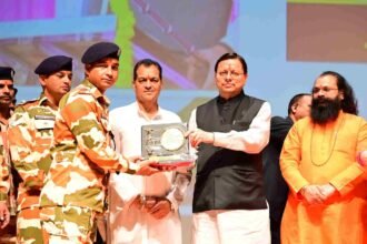 मुख्यमंत्री श्री पुष्कर सिंह धामी में आपदा में सहयोग वाले कर्मियों को किया सम्मानित।